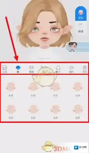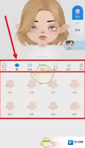 5、开始自由捏脸,选择喜欢的五官、脸型和发型