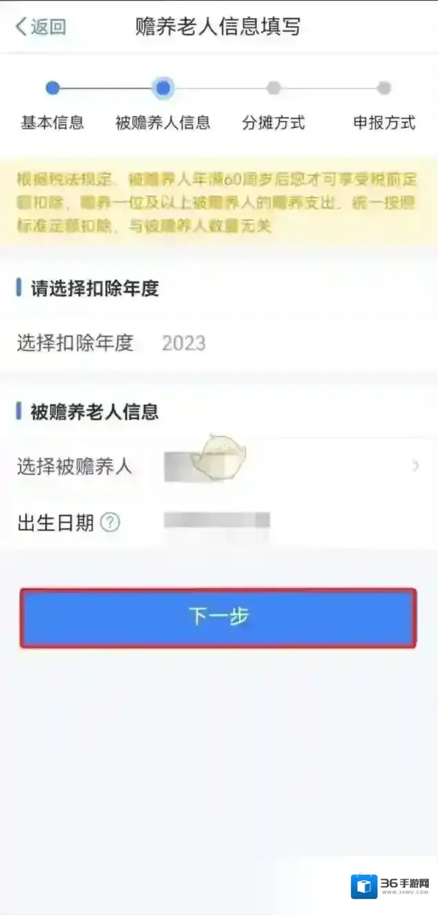 7、等到被赡养人信息确认后,点击“下一步”选项。