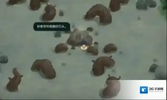 走出这两块迷雾森林后,又会捡到两个碎片,解锁刻着奇怪图腾的大石头的拼图。