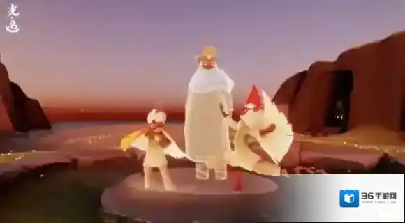 季节先祖的位置也是非常明显的,基本上每个地图都有季节先祖的分布,大家在刚进入的初始位置会看到一个发光的石碑,靠近之后就会出现先祖。季节先祖的石碑面前有一堆感恩季蜡烛, 这就是区分和普通先祖的重要标志。