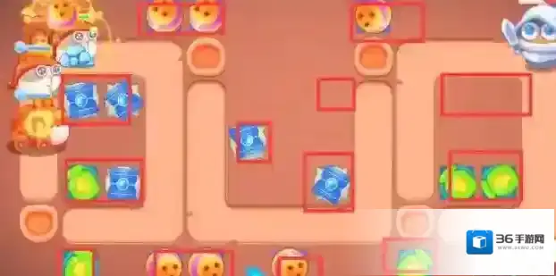 4、在每个区域都放置炮塔防御同时开图,在拐角处放置保龄球开图并且最大化输出。