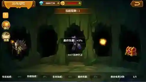 丛林探险是《荣耀大陆》在前期为领主们开放的趣味副本玩法,副本设置为层层攀爬式的机制,即类似单人爬塔玩法,每一层挑战的难度会越来越难直到你哭着摔手机(才怪咧)…进入丛林探险副本后,领主所在的初始层级为第一层,每层设置5道木门,领主可消耗免费探索次数或道具:斧头,随机开启任意木门进行探索。开完每层的5道门并成功挑战守卫才能通关至下一哦!