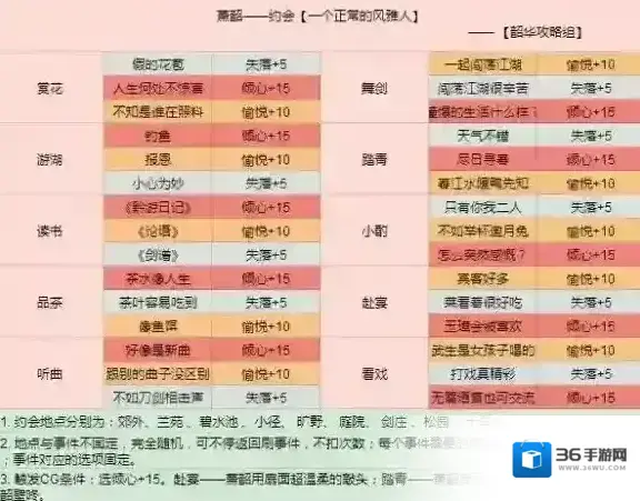 约会地点有9个,约会事件有10个,每次随机给3个地点,每个地点随机出发3个事件。