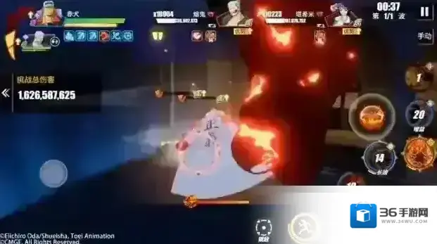 赤犬烟鬼组合要点:开局聚怪打怒出奥义切赤犬进行输出,核心是最大程度地保证特性buff挂上和最大化安排主C技能输出循环。全程烟鬼和赤犬各打3轮伤害,新世界烟鬼开局用时2S,其余每轮用时7-8S,赤犬每轮用时分别为27S,25S和22S。