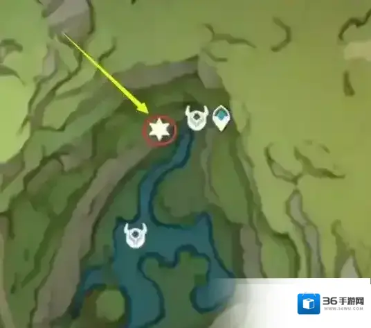 –第一处:如图所示,在瀑布旁(可直接寻找,如果没有找到需要使用道具触发)