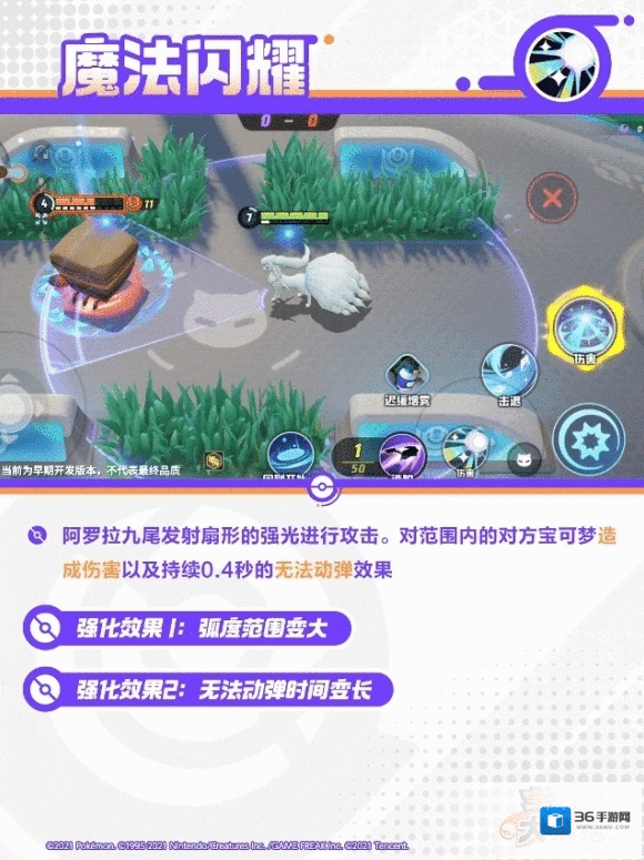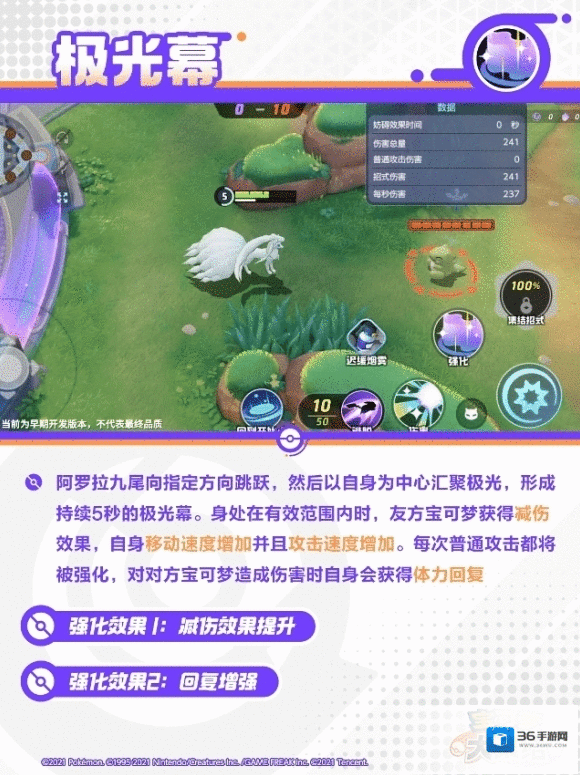 阿罗拉九尾向指定方向跳跃,然后以自身为中心汇聚极光,形成持续5秒的极光幕。