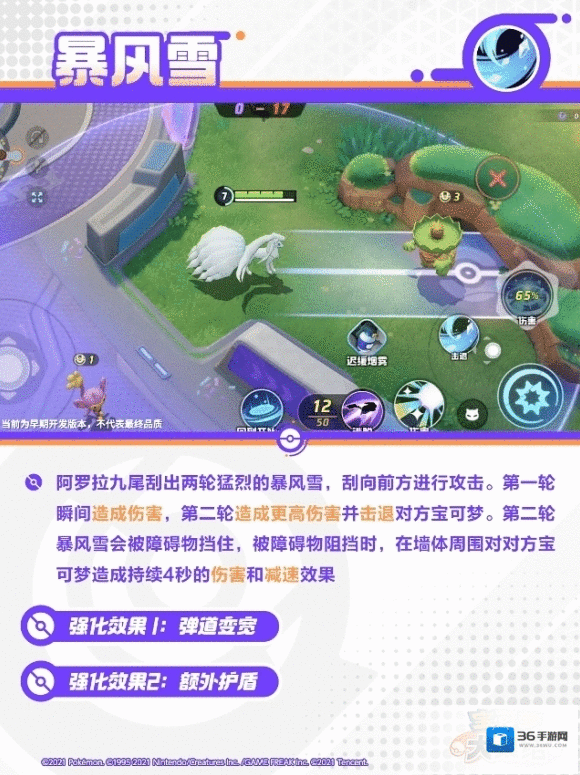 阿罗拉九尾呼唤风雪朝指定地点进行攻击,风雪接触到对方宝可梦时对范围内造成伤害。