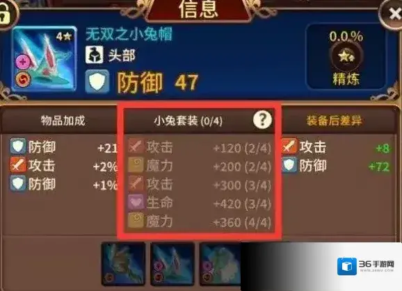 9、之后可以慢慢收集装备。装备一律以套装优先,3星4星套装加成要比5星紫色散装来得好。