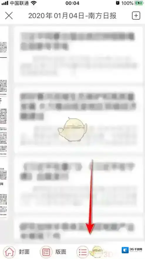 3、打开后,就可以看到南方日报的整个版面了,点击左下角“封面”回到封面,左右滑动查看其他的版面。