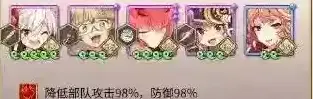 是以加藤清正为主,他的二技能(自身兵力低于50%触发护盾,吸收XXX点伤害)是在98%减益下站住的条件,配上他的必杀群体晕眩以及击退,加上阿江的群体伤害以及其他两人的辅助控制和群体伤害达到快速击杀控制,配上石田三成的群奶始终保持加藤清正的血量每波都保持在50%以上稳定触发护盾效果。