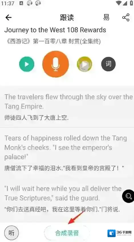 3、点击下方的跟读按钮进入跟读模式;