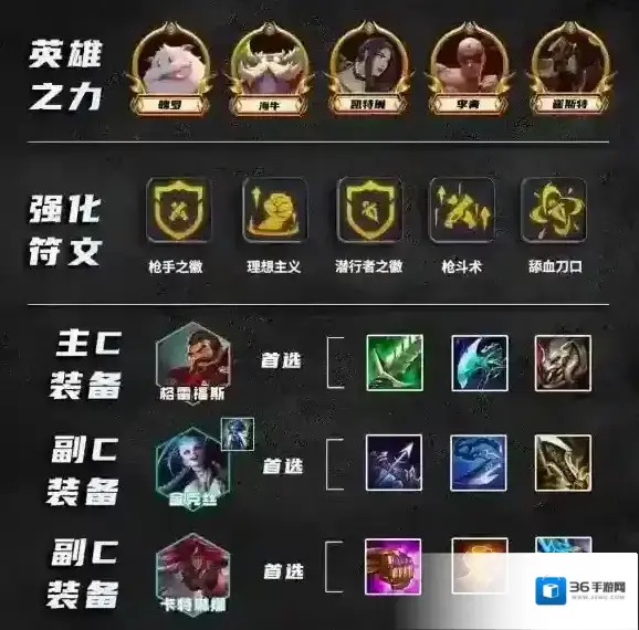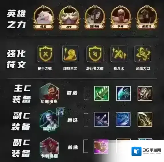 也可考虑海牛阿福英雄之力开枪手徽、潜行者之徽拉高阵容上限,其他如凯特琳(天生二星)、李青(DD街区)、崔斯特(潘多拉的装备)也都能选择。