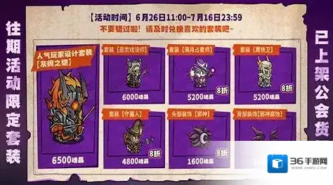 往期活动限定套装已上架公会货架,不要错过啦!请及时兑换喜欢的套装吧~