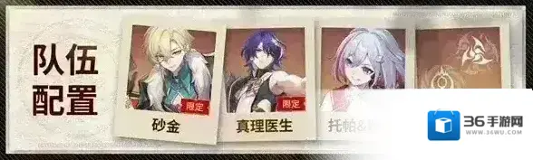 这个组合是之前就已经出现的追击组合,砂金入队之后低氪度(0+0)的情况下也终于能够满足真理医生的基本需求 凑至少三个负面效果了。所以辅助位可以自由选择同谐或者虚无。并且在这个队伍中,输出流砂金也能获得不错的体验。