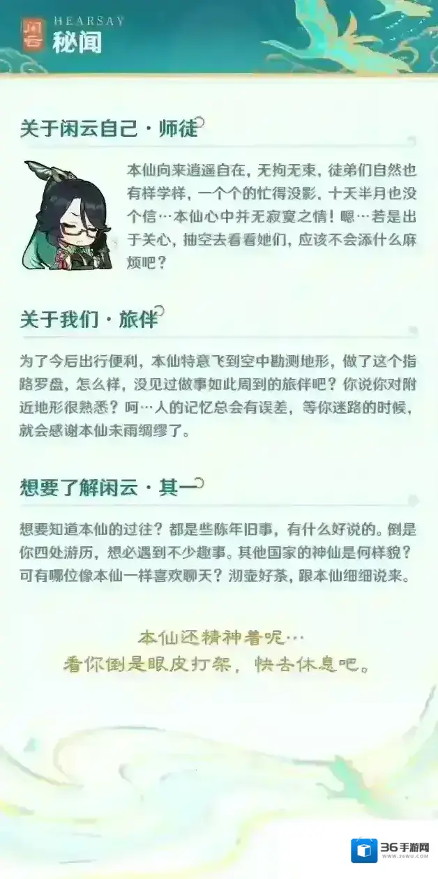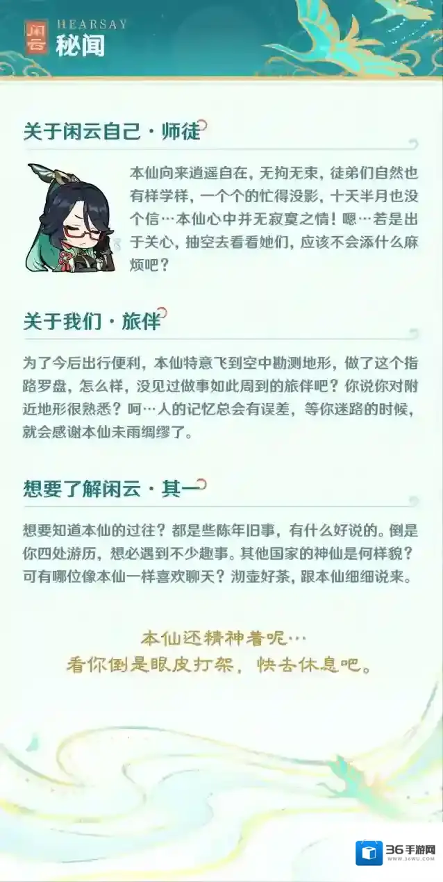 原神「如今人间风调雨顺,也就无须本仙呼风唤雨了。」--「鸾音鹤信」·闲云