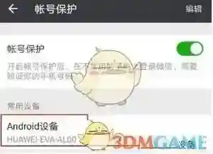 验证成功之后,就可以看到帐号保护开启成功了,也可以看到常用的设备,如下图所示。