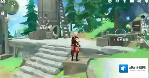 6、之后需要按照图中顺序进行换取药液,接下来爬到坩埚顶部并在背包中找到密钥并使用。