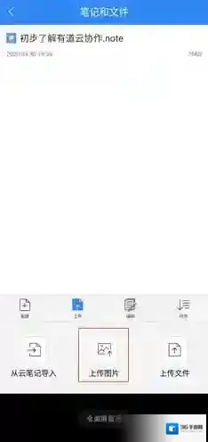 3、接下来是上传功能,上传功能分为从云笔记导入、上传图片、上传文件;