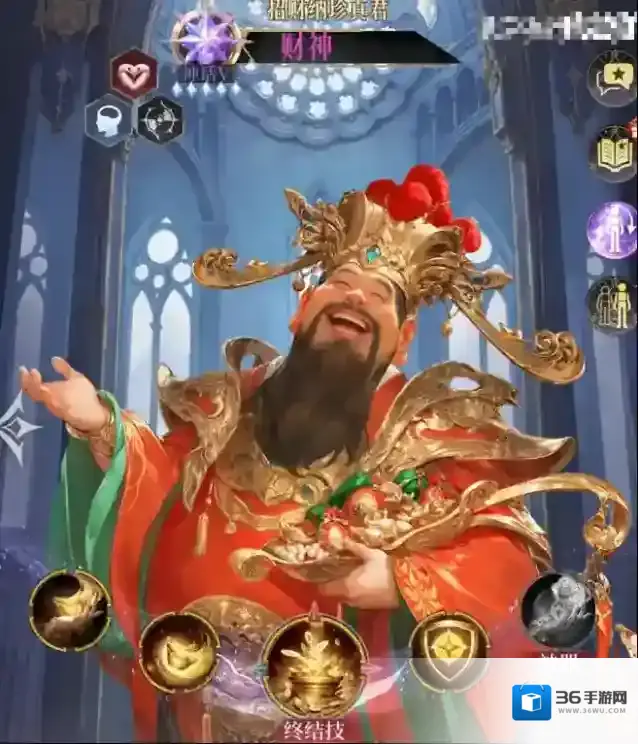 财神是治疗型辅助,如果没有可用同定位的其他神明代替;其可通过一技能给友方提供治疗,终结技、神器都可给友方提供回能,可提升宙斯的终结技释放频率。