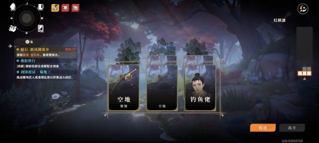 最后到蜀地小村红枫渡,解锁钓鱼点,对话旁边的人