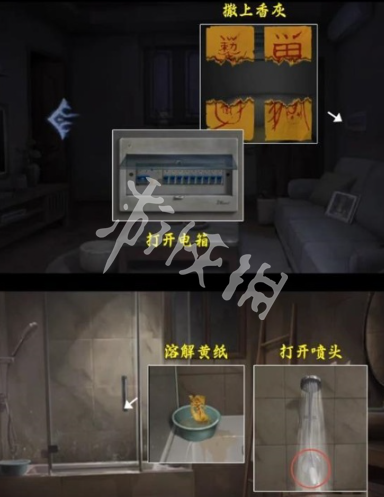 10、返回客厅,将香灰洒在电闸上,符文就会消失,然后打开房间的等,并将黄纸放在浴室溶解,然后打开浴霸关门。