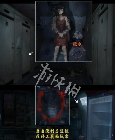 6、然后再利用符文线索,用毛笔画出来就能拿到胶水,然后前往便利店查看监控,就能得到有关工具箱的线索。