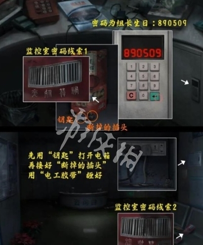 18、进入监控室,根据键盘上指纹深浅获得密码803172,输入查看视频,然后在抽屉里获取细铁丝,插入锁芯完成小游戏就能出去。