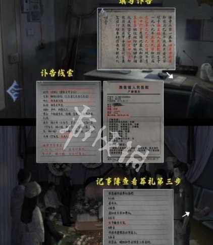 22、根据西莲人民医院尸检报告以及记事簿第一页,将监控室桌子上的讣告补充完整,然后查看第三步-服务宾客。