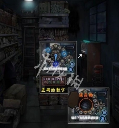 11、进入店里,将旋钮放在扭蛋机上,然后结合线索-冥币1、棺材1、纸花3、元宝4、金条1,然后扭蛋获得镶嵌物。