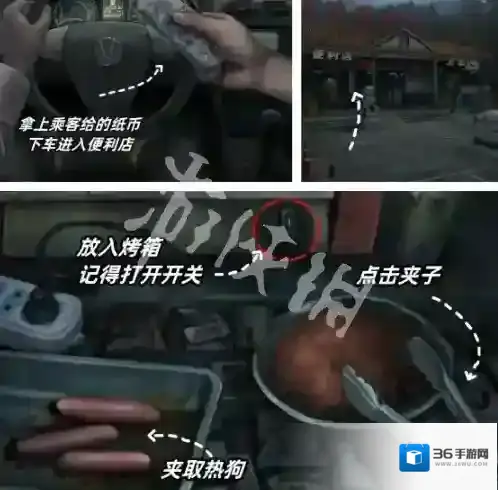 1、玩家需要利用乘客给的纸币前往便利店买东西,烤肠需要放进烤箱并打开开关。