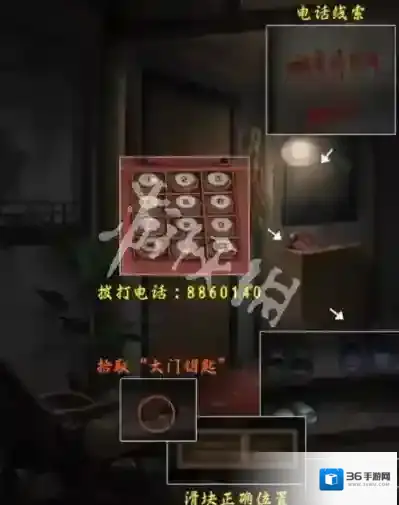 2、根据右侧窗户上的电话,需要进行拨打获取线索,然后打开下方的鞋柜,滑动白色板鞋得到大门钥匙。