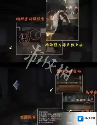 33、卧室左边桌子拼人偶,放上底座以及小人偶,电脑房点击电脑获得照片,再次穿越到该房间偷听对话即可。