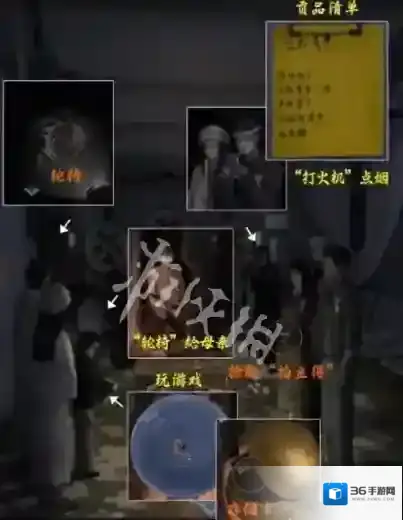 23、场景回发生改变,在宾客手中拿到拍立得、存储卡,并将左边屋子的轮椅拿给女友妈妈,再用打火机将纸人香烟点着获取贡品清单。