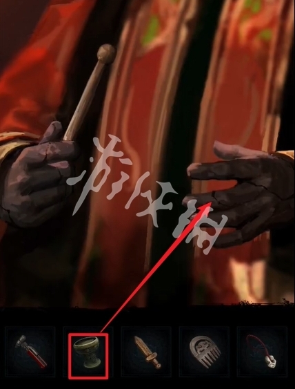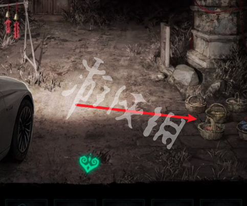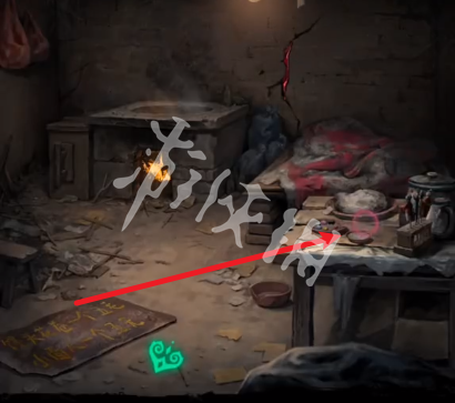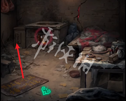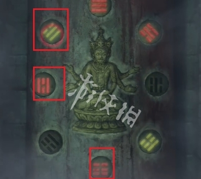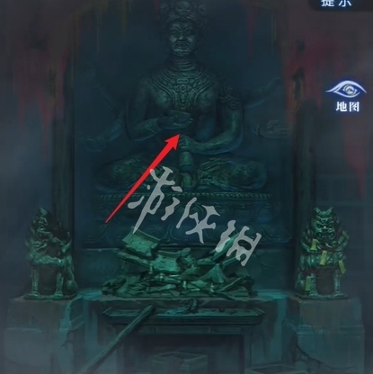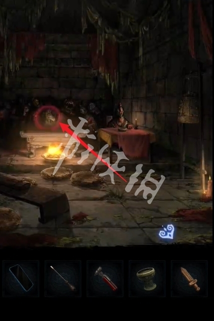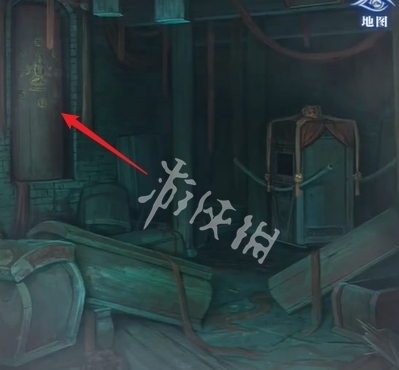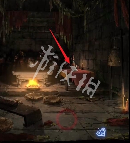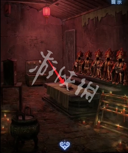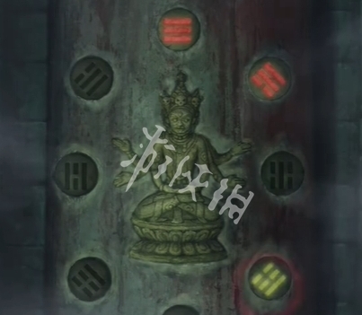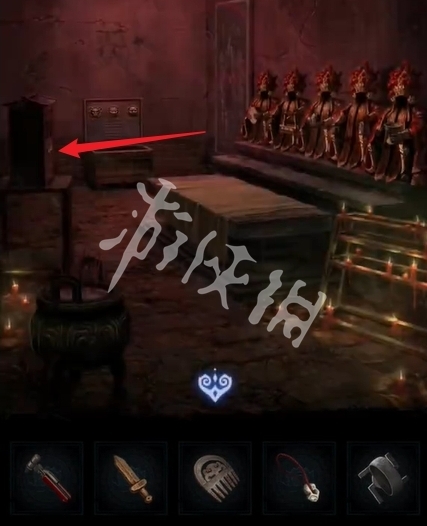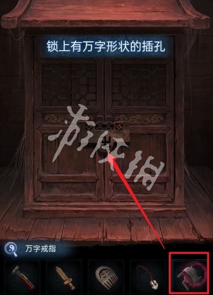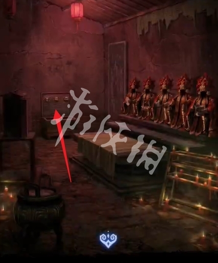50、在图中场景,点击箭头处的物品,并使用万字戒指打开,会发现缺少一个戒指。
