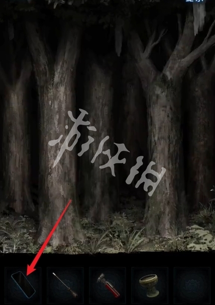 8、再次靠近小女孩,点击下方的道具,然后剪掉女孩身上的树藤。