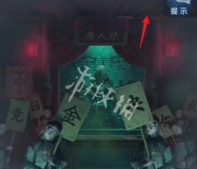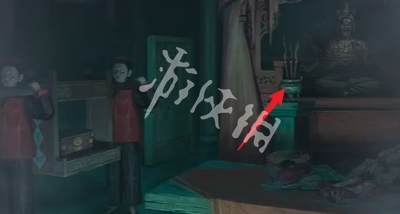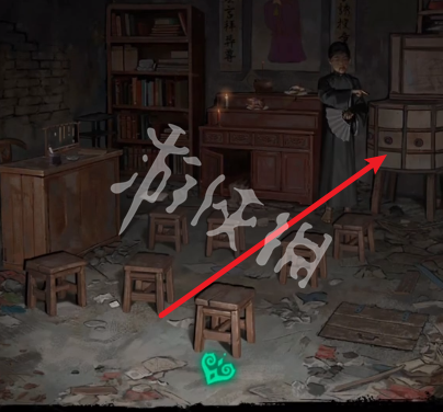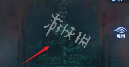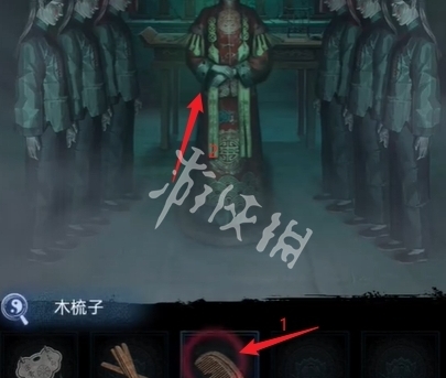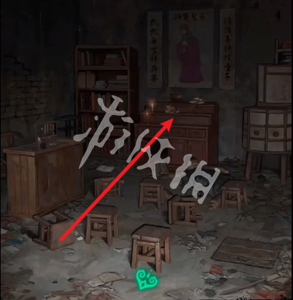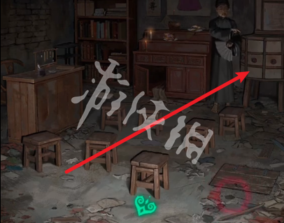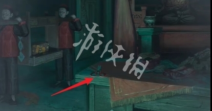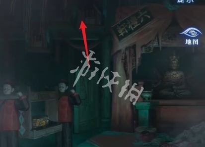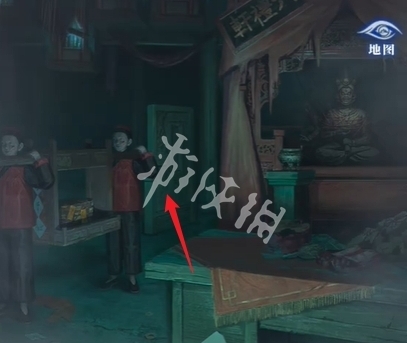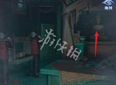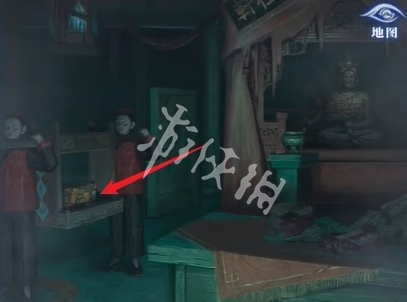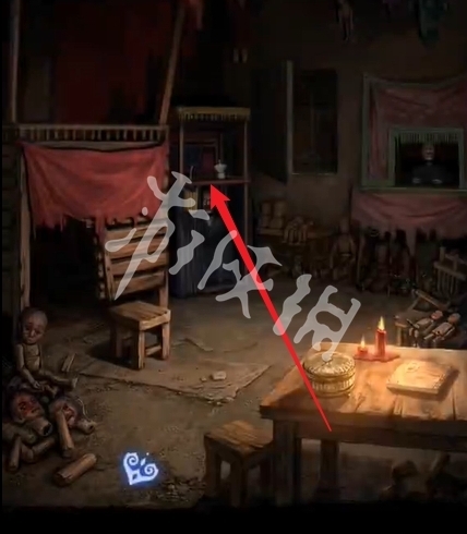 27、进入箭头指向的房间,然后点击柜子,接着将道具栏中的小人雕像放入上方的人形凹槽中。