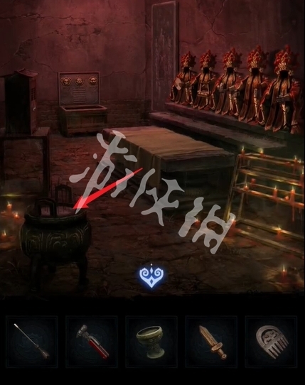 41、再次点击香炉,先点螺丝刀,再点神像的手。