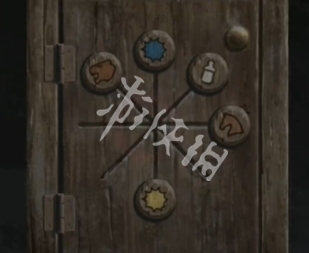 21、然后按照图中位置,调换六个锦旗的位置,就能打开柜门。