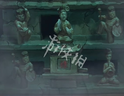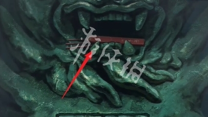8、将获得的面具放置在图中方框的位置,即可打开石门,并进入。