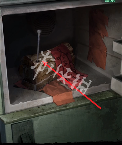 23、进来后点击冰箱,里面有个小棺材,将棺材钉插进小棺材里。