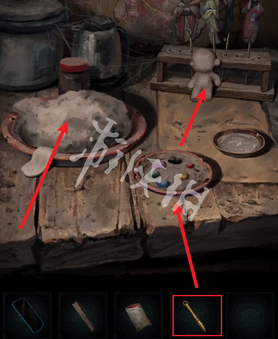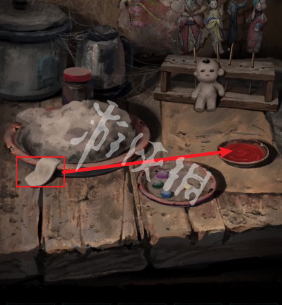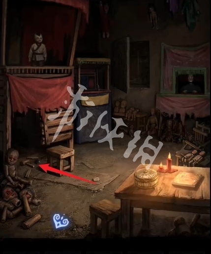 25、点击道具栏中的布娃娃,并将它放在图中位置,然后唱戏机就会发出声音。