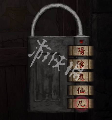 22、点击二楼的门,点击密码锁,密码是阳阴鬼仙凡。