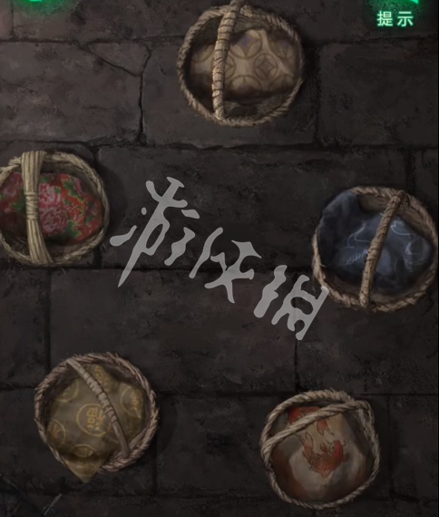 1、首先点击右边地上的竹篮,然后按照下图位置进行摆放。