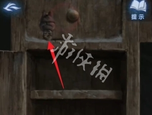 25、点击墙壁上的这块砖,拖动榔头将其敲碎。