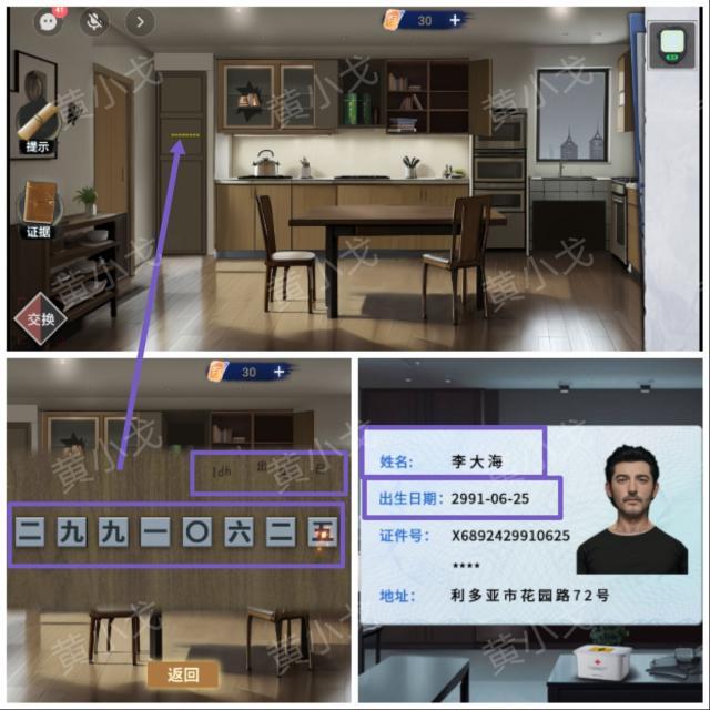 11.点击棕色柜子上的密码锁,根据上面的提示,结合队友那边的线索,输入密码:29910625