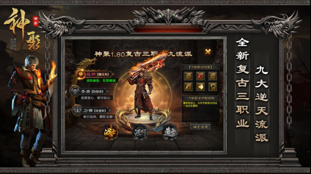 神聚传奇,180复古三职业九流派版本,装备材料全靠怪物产出,跨服活动全天激情不断!本服在战、法、道基础上衍生出了九种不同流派,每一种流派都有着独特的技能体系和多样的玩法,搭配上丰富的装备体系,让玩家们能够体验到千变万化的精彩内容!