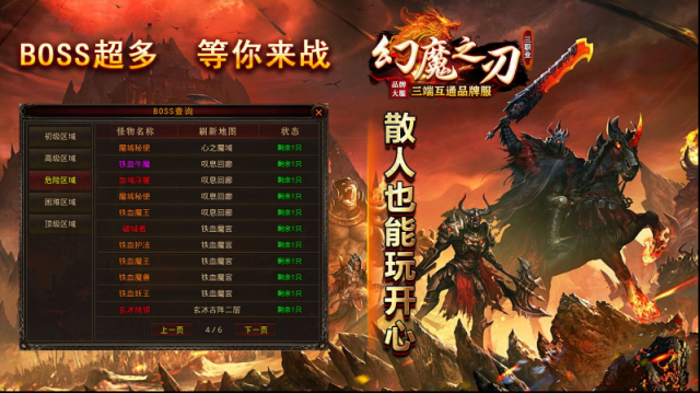 幻魔之刃,185三职业经典传奇版本,上线即送自动拾取、自动回收、背包全开、仓库全开,免费挂机,让你直接就能畅快下图砍怪,升级打宝两不误!游戏内所有装备、材料都能爆,BOSS多到打不完,让每一位玩家都有足够的资源!各种极品装备BOSS都能爆,打到一件就能直接起飞,花时间人人都能够有机会逆袭,耐玩和挑战味道十足!