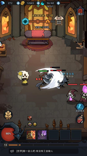 3、进入副本后玩家可以手动操控角色进行战斗,也可以选择自动战斗,手动需要玩家点击地图来控制角色移动,自动则不需要。