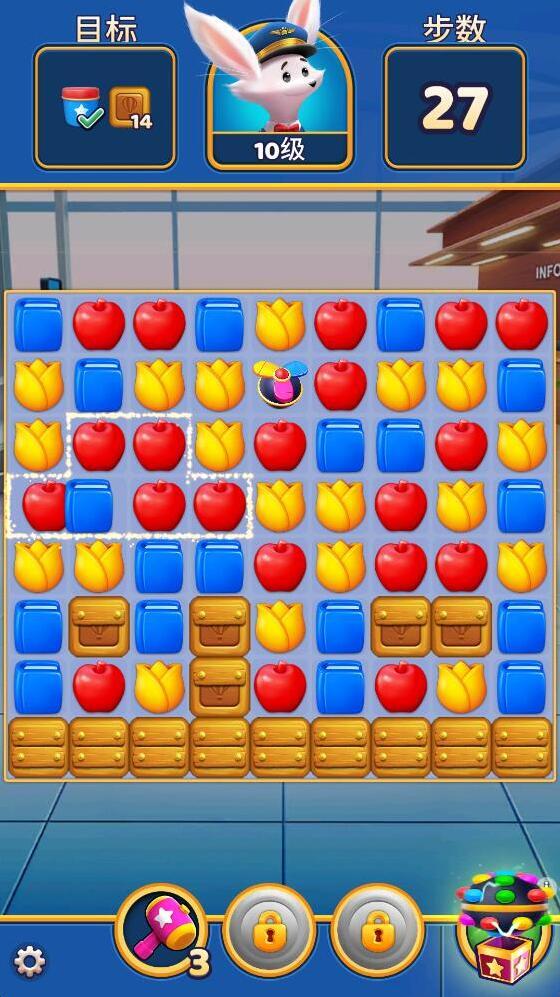 3、将三个相同的物品放在一起就可以消除,在有限的步骤内消除所有目标就可以通关。