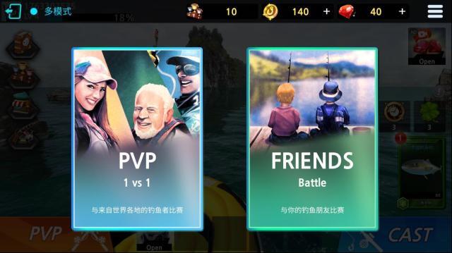 游戏除了单人钓鱼外,还可以参加PVP和来自世界各地的钓鱼爱好者进行较量。除此之外你还可以邀请你的好友来进行钓鱼比赛,不同的钓鱼地点将等你去选择,有趣的对战玩法会给你新的钓鱼体验,不断获得更多的积分来成为世界顶级钓鱼高手。